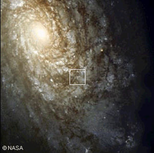 The Milky WayWe can now see some of the detail of the Milky Way spiral. Our galaxy contains about 1011 stars mutually bound by gravity orbiting in a clockwise direction as seen from above the north galactic pole. The radius of the Milky Way is about 50 000 light years and the Sun orbits the center at a distance of about 30 000 light years. The Sun will complete an orbit of the galaxy once every 250 to 300 million years. Given an estimated age for our solar system of 4.5 thousand million years, the Sun has made about 15 to 18 orbits around the galactic core. The reasons for the spiral structure of many galaxies are still being debated. The spiral arms appear to be the result of density waves of star formation. The fact that about a third of all galaxies are spirals would indicate that the spiral structure of galaxies is stable over long periods of time. (If they were short-lived structures there would be fewer of them at any given time). On the other hand, since the outer stars rotate much more slowly than the inner stars, the arms seemingly should tend to wind up tightly and the spiral structure eventually disappear. The forces that maintain a stable spiral over thousands of millions of years are unclear. Copyright © 2016 by Bruce Bryson |