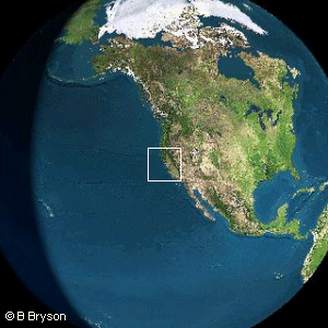 North and Central AmericaUntil now we have been seeing essentially flat images. This is the first picture in which there is any depth. The edges of the Earth are 6400 km behind California in the center of the picture. This is important for the next several jumps because we can talk about a local volume of space. For the next several jumps, I have not included the background stars in the images. Think of each image as a cube of space of a particular size. The image displays only those objects within the immediate volume of space, without any background objects. I hope to convey a sense of the emptiness of our part of the galaxy. Copyright © 2016 by Bruce Bryson |